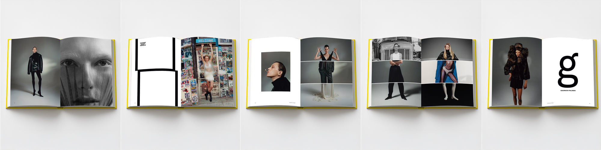At the core of the book is a unique interactive element: a flip section that divides each photograph into head, torso, and legs. By turning these segmented pages, readers can mix and match different parts of the models, creating thousands of unexpected silhouettes and combinations.